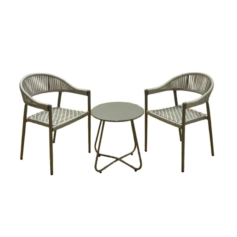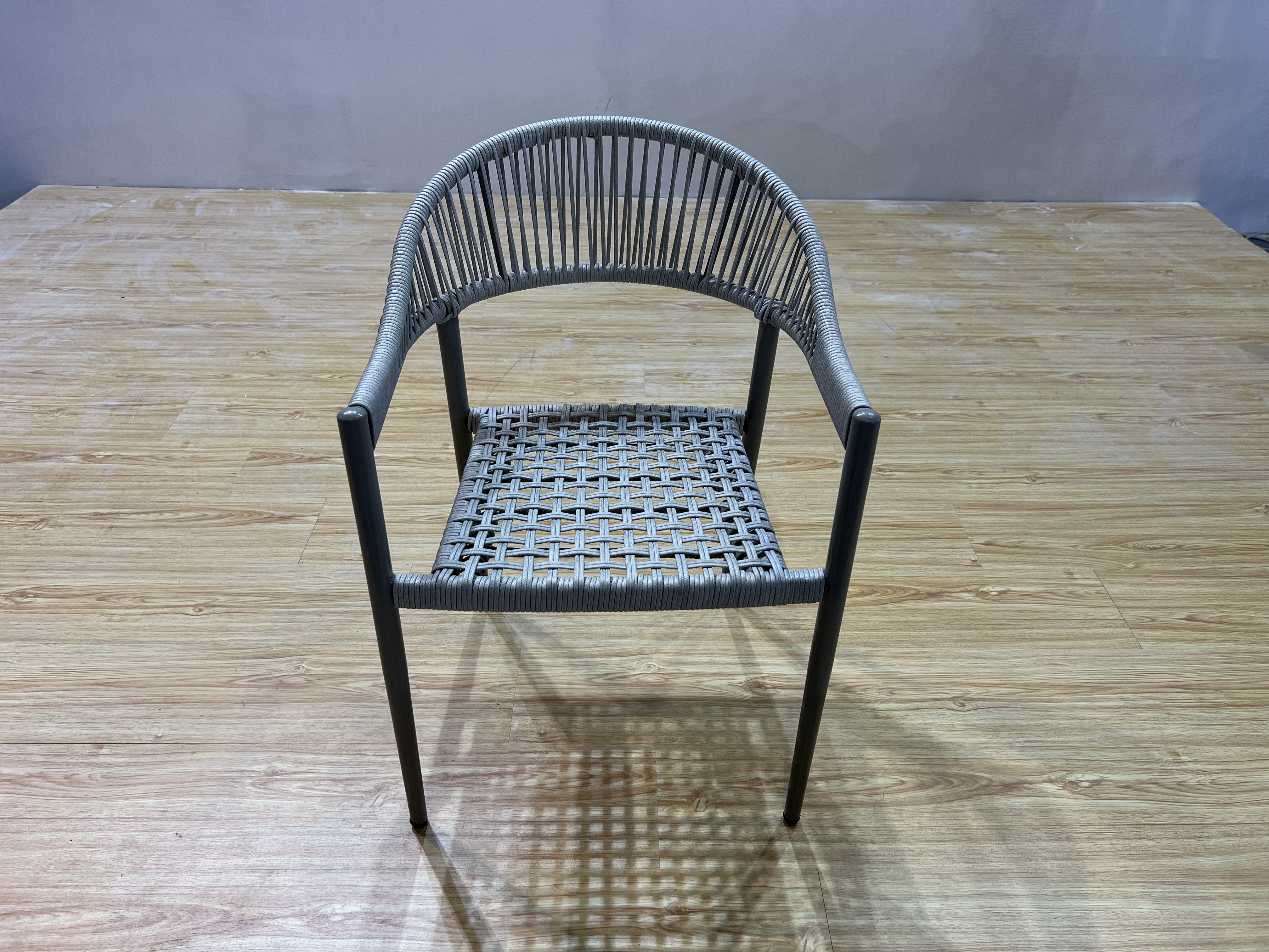 Steel Frame,Chair With Wicker Weaven, Steel Plate On Table