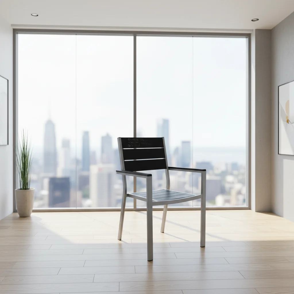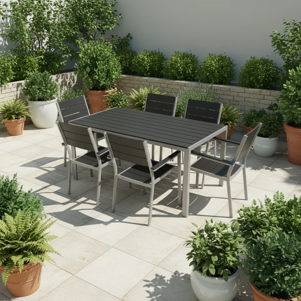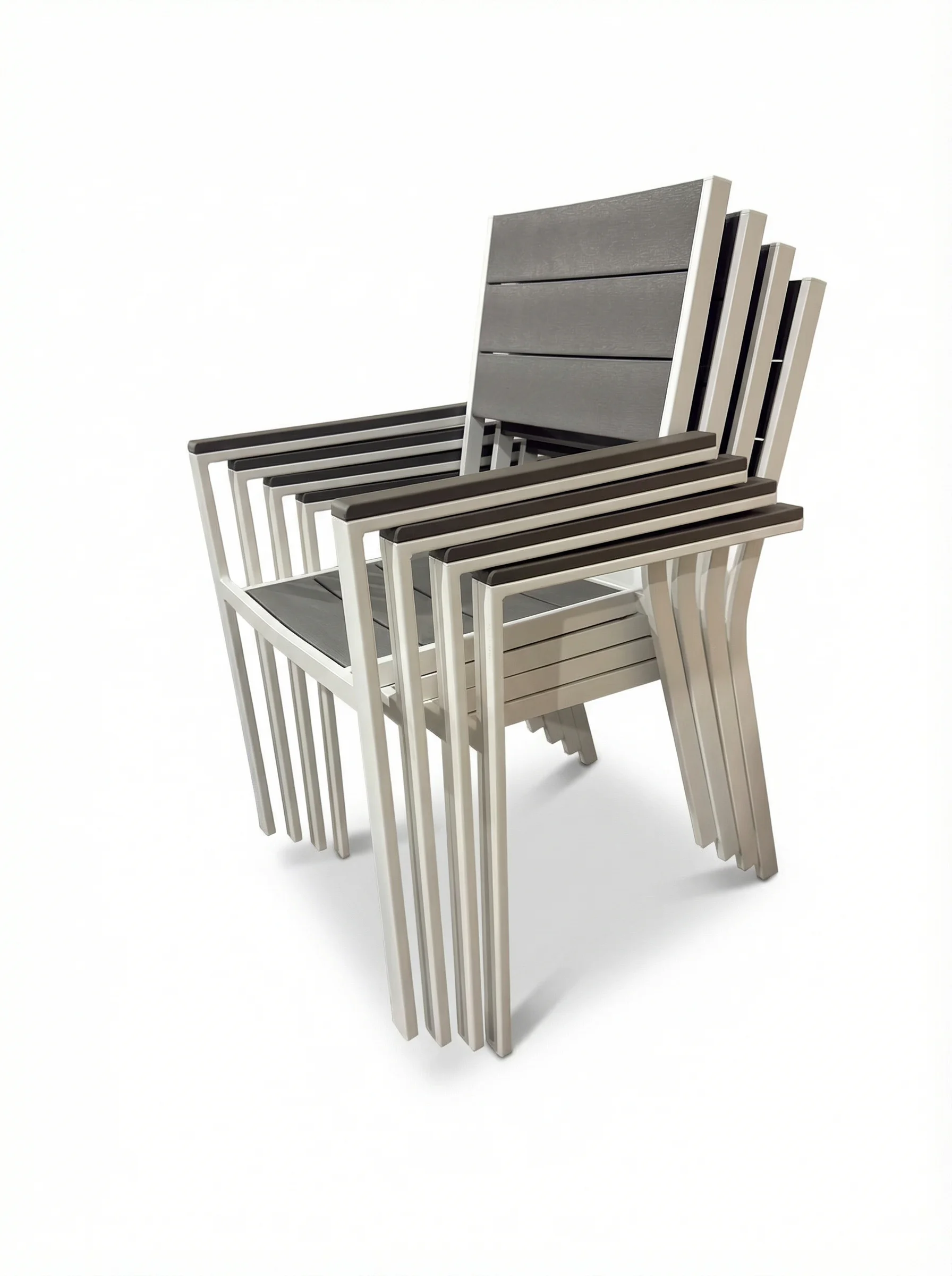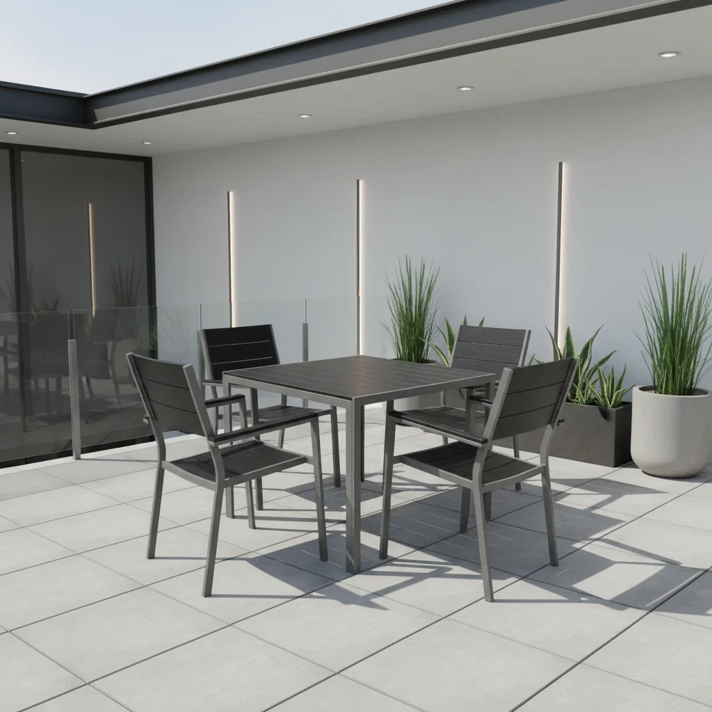 Aluminium square Dining Set Weatherproof Trestle Top and Armchair Design, Perfect for the Terrace, Garden and Outdoor Leisure