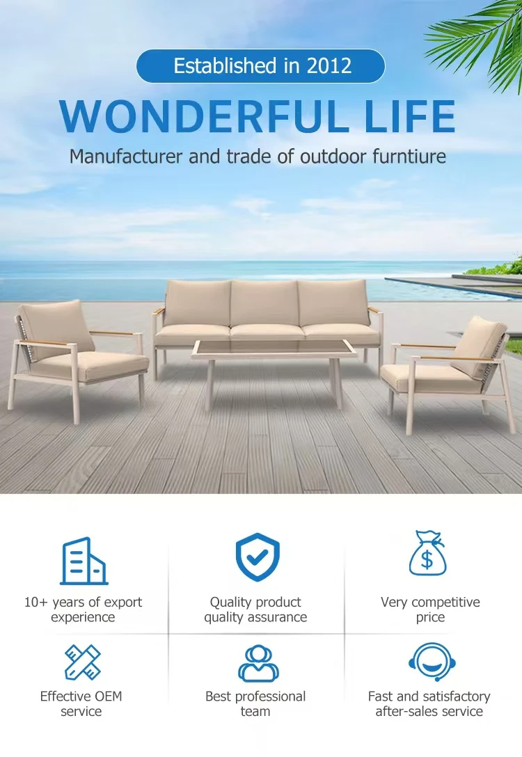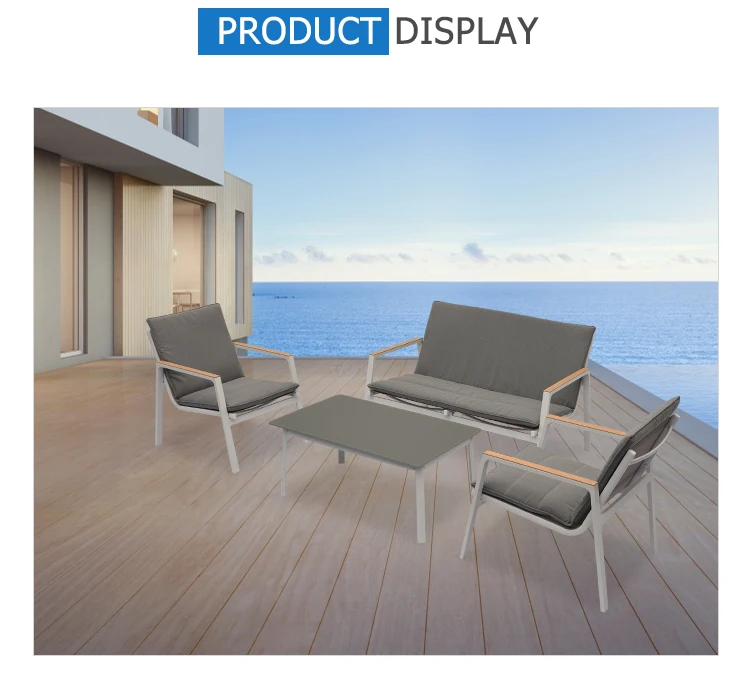 Модерни бијели алуминијумски оквир софа и столица са пластичним дрветом за напољни дворић